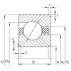 | 角接触球轴承,类型E,带有塑料(聚酰胺)兜孔保持架,运行温度 -30°C 到 +120°C |